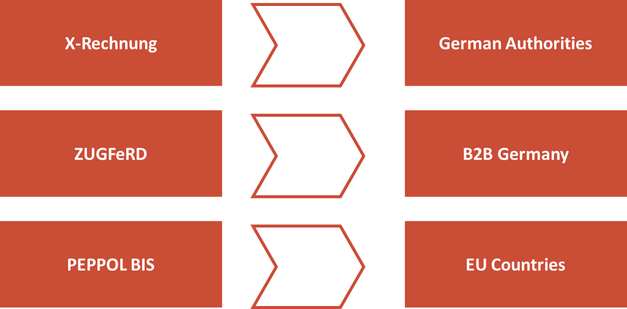 Das im April 2017 verabschiedete E-Rechnungsgesetz des Bundes setzt diese Forderungen in nationales Recht um. Für alle öffentlichen Einrichtungen von Ländern und Kommunen gilt dafür eine Frist bis spätestens April 2020. Für Bundesbehörden gilt bereits der November 2018.